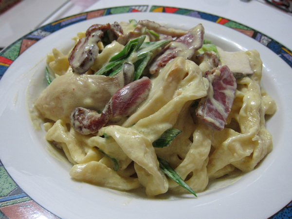 這鴨賞不就是煙燻鴨肉嗎?作成義大利麵應該不錯!