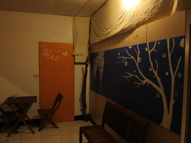 自己採購裝設電燈,自己在牆上畫上圖畫,